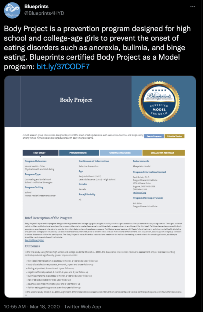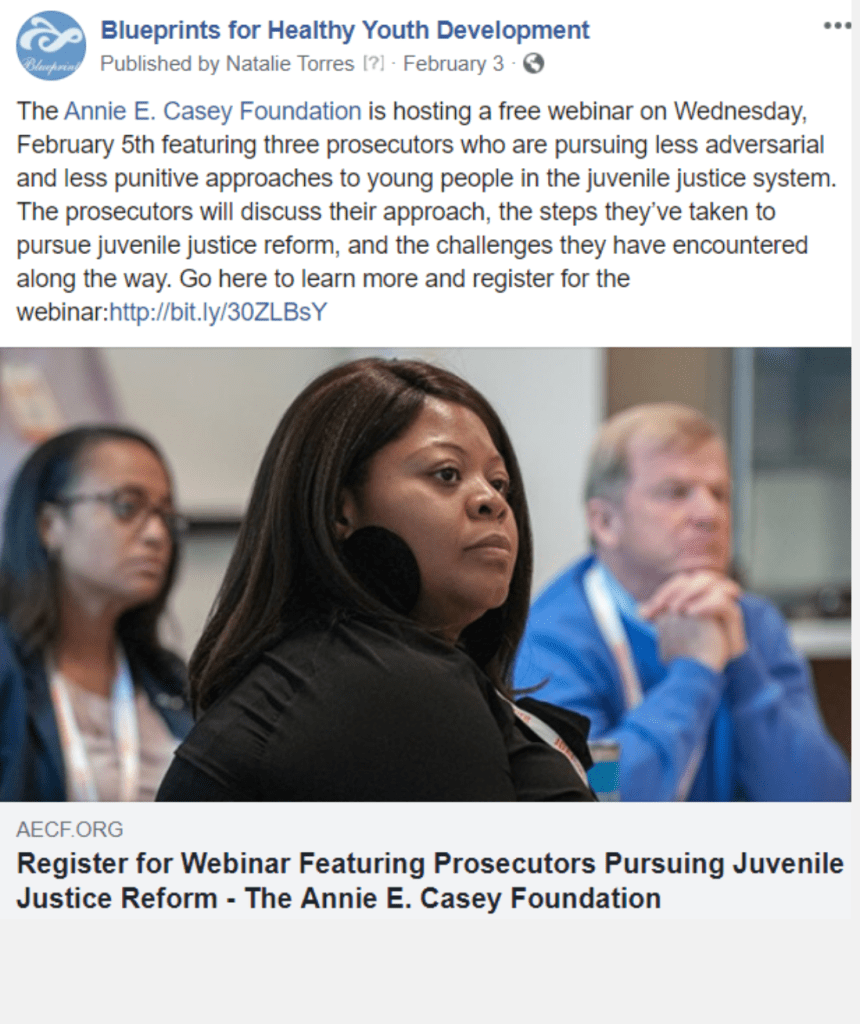 Blueprints Model Program in the news Post on Facebook February 24, 2021